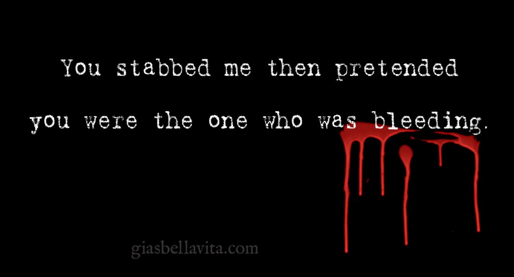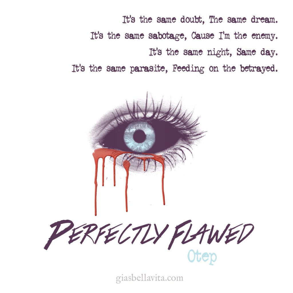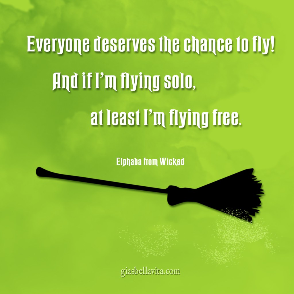 “It’s the same doubt, the same dream, it’s the same sabotage, cause I’m the enemy. It’s the same night, same day, it’s the same parasite feeding on the betrayed.” ~ Lyrics from Perfectly Flawed by OtepYou stabbed me then pretended you were the one bleeding.Everyone deserves a chance to fly! And if I’m flying solo, at least I’m flying free. ~ Elphaba from Wicked